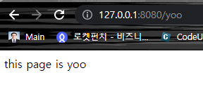 해당 주소로 이동하면 yoo함수의 리턴값을 페이지에서 확인 가능하다.