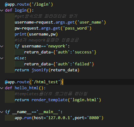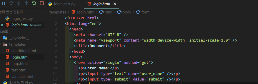 render_template함수를 사용해 login.html파일을 열어준다.
