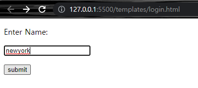 위 html문서의 위치는 templates폴더의 login.html이고 위와 같은 형식의 페이지가 만들어진다.