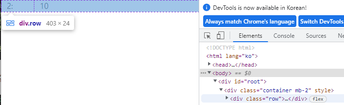 col-2,col-10에 의해 div가 컬럼,2대10비율로 스타일이 입혀졌다.