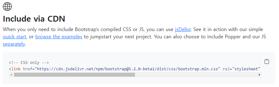 부트스트랩을 CDN방식으로 사용하기 위해 링크를 가져온다.
