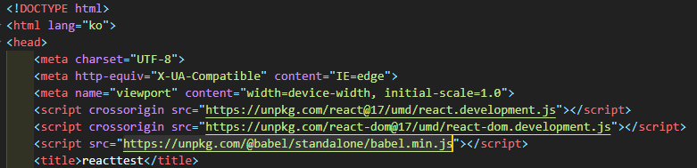 CDN방식으로 JSX를 사용하기 위해 해당 링크를 긁어온다.