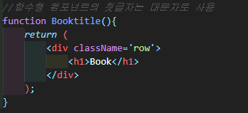 이번엔 함수를 생성하고 반환값으로 태그를 입력했다. 여기서 함수형 컴포넌트의 첫글자는 대문자로 해준다.