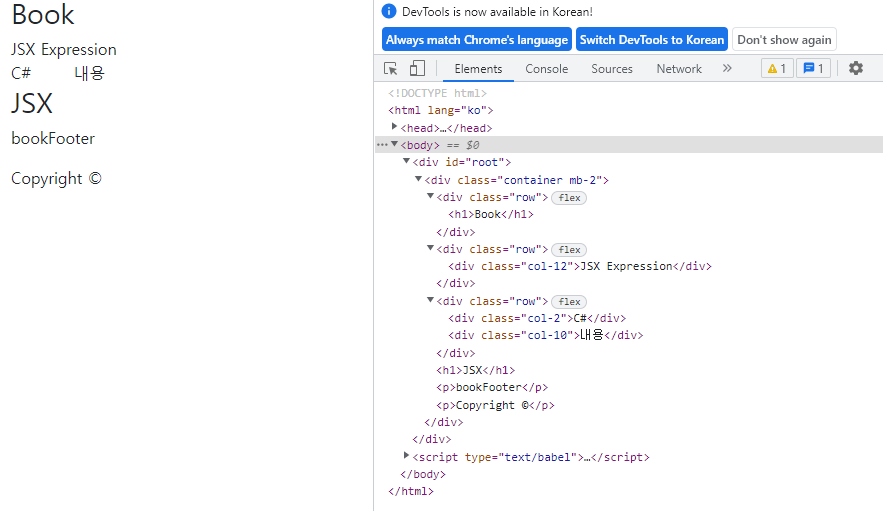[React] JSX 이용해 중첩노드 생성, Bootstrap으로 스타일 주기