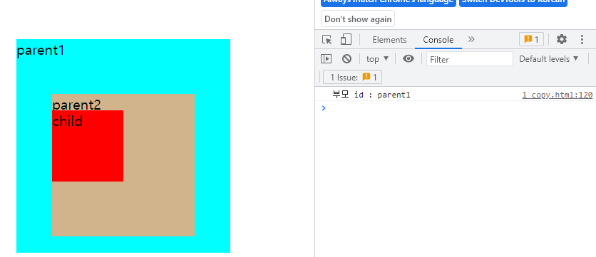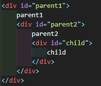div태그를 세 개 중첩했다. 구조상으로는 parent1 > parent2 > child 이다.