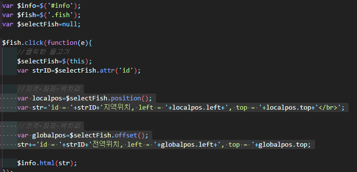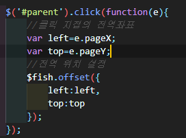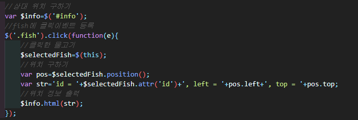 어항을 클릭했을 때 클릭한 위치를 e.page를 통해 구하고
