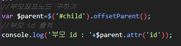 child 노드에 offsetParent를 적용하여 $parent변수에 저장하고