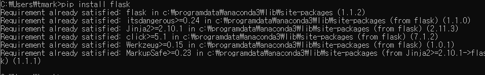 우선 플라스크를 사용하기 위해 'pip install flask'를 써서 다운받아준다.