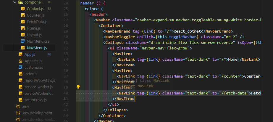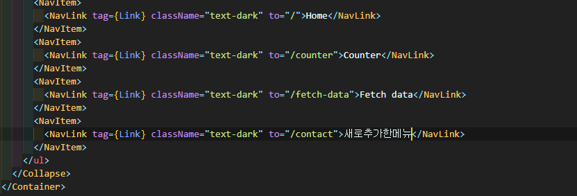 Component폴더의 NavMenu.js파일로 가서 NavItem을 하나 더 추가해준다.