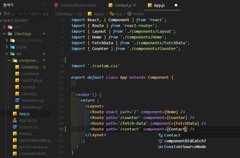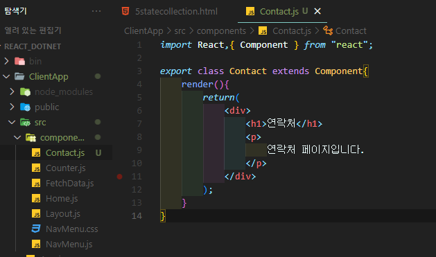 Contact를 엔터치면 import가 자동으로 된다. 아마 VSC에서 제공하는 기능인듯 하다.