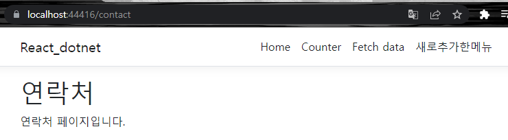 해당 메뉴를 클릭하자 /contact경로로 라우팅 되고 아까 생성한 컴포넌트가 호출되는 것을 볼 수 있다.