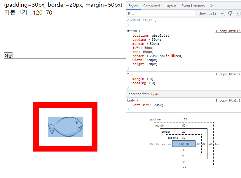 그렇다면 만약 이 물고기 액자를 오른쪽 테두리에 붙여주려면 어떻게 위치를 잡아야 할까