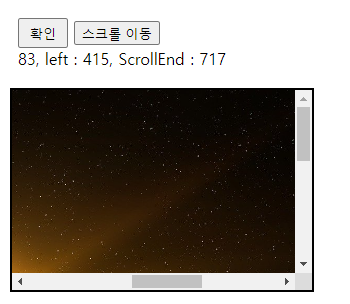 ex) (스크롤left위치 717) + (스크롤 창의 크기 300) - (스크롤바와 테두리의 크기 17)