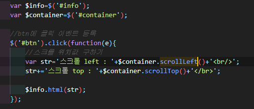 scrollLeft와 Top 메소드를 사용해 container노드의 현재 스크롤 위치를 리턴한다.