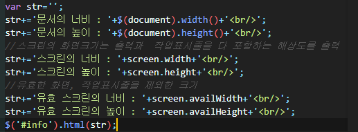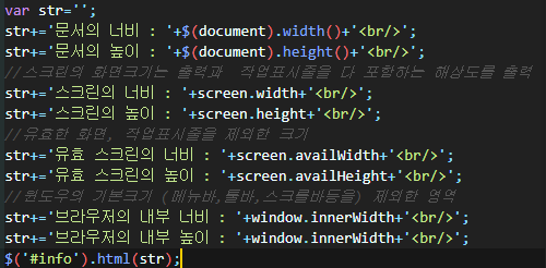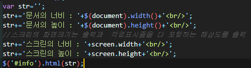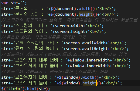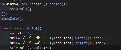jQuery를 사용해 document를 불러온 뒤 width와 height를 사용한다.