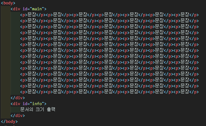 의미 없는 p태그로 가득 체워진 웹 문서에서 크기를 구해보도록 한다.
