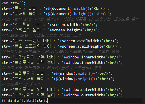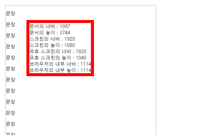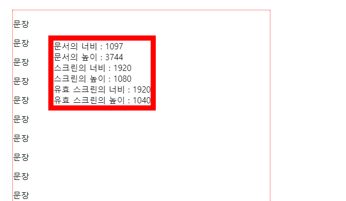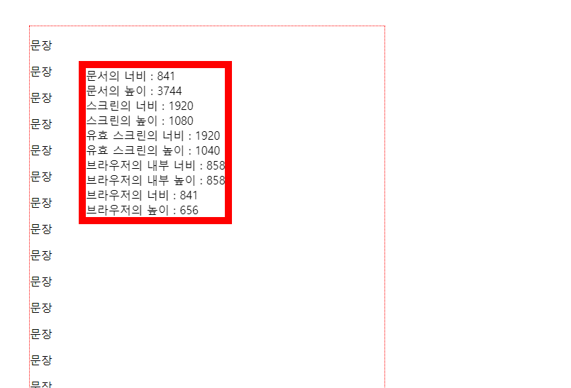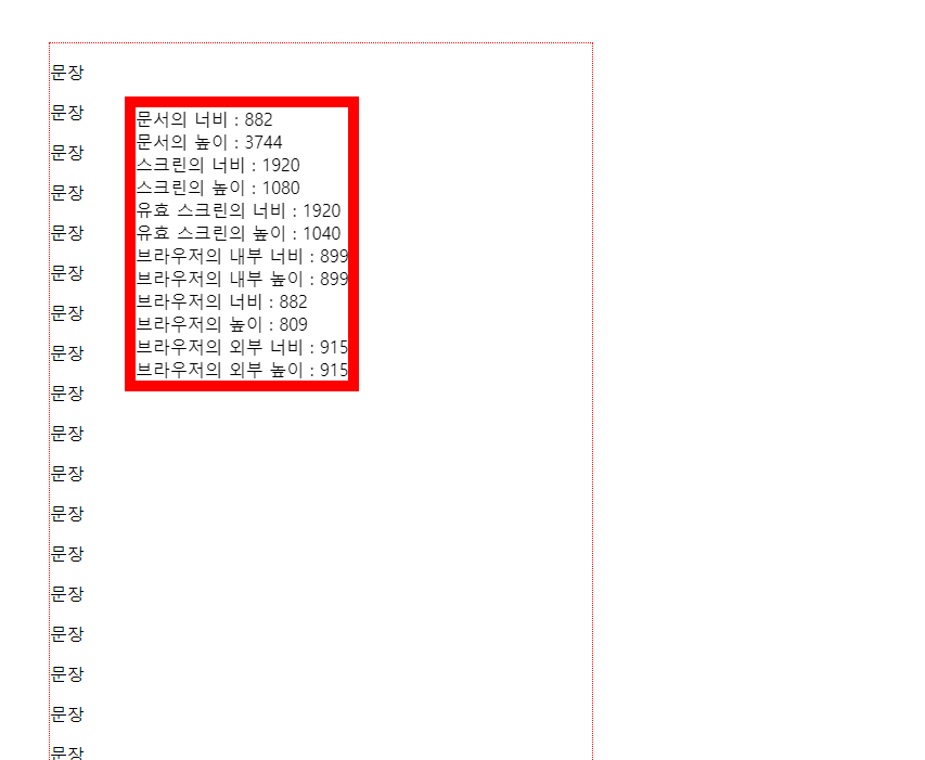 웹 브라우저인 window의 크기는 스크롤바만을 제외한 크기로 나타난다.