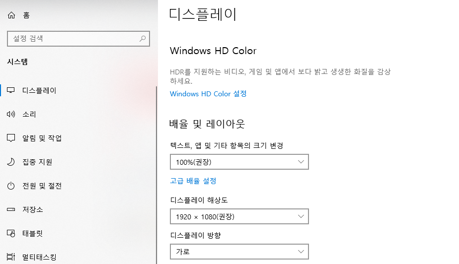 제어판의 해상도의 값을 확인해보니 제대로 구해졌다.