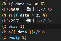 for문과 마찬가지로 {%를 사용하며 endif로 닫아준다.