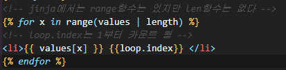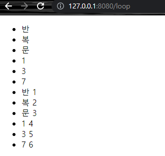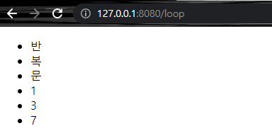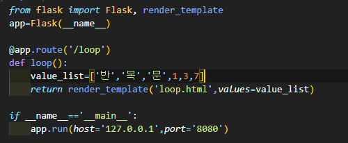 라우팅경로 /loop에 리스트를 정의하고 values로 전달한다.
