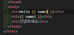 html에서 변수는 {{ }}중괄호 두개를 겹쳐서 사용한다.