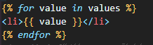 전달된 리스트인 values의 각 원소가 li태그에 반복해서 들어간다.