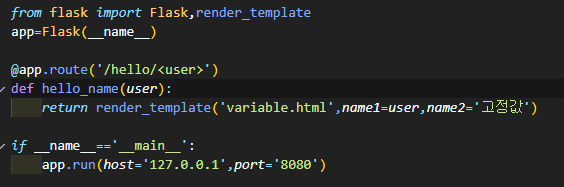 라우팅경로에서 user변수를 받아 name1에 전달하고 name2에는 문자열을 넣어준다.