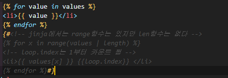 jinja에서 주석은 {#을 사용한다.