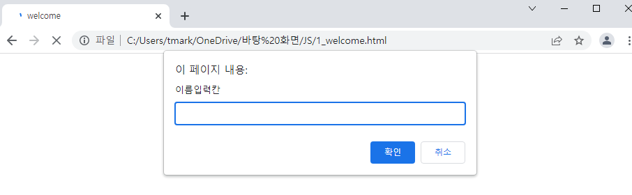 prompt를 사용하여 입력을 받고 그 내용을 생성한 name변수에 저장한다.