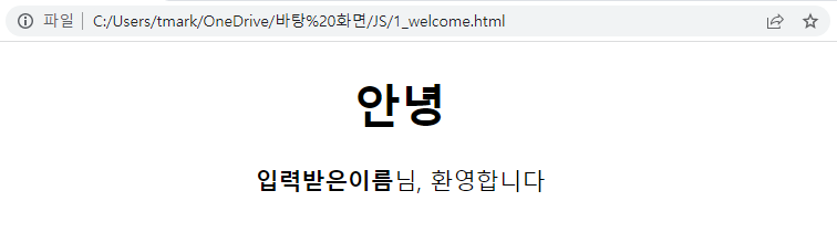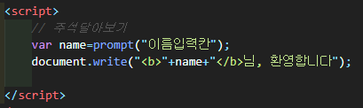 입력받은 내용을 출력하기 위해 document.write를 사용하여 <b>태그를 입혀 문장을 출력하도록 했다.