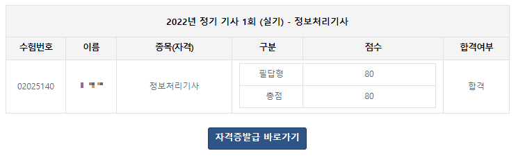 - 수험번호 (수험표는 따로 필요하지 않으며 수험번호만 알고있으면 된다.)