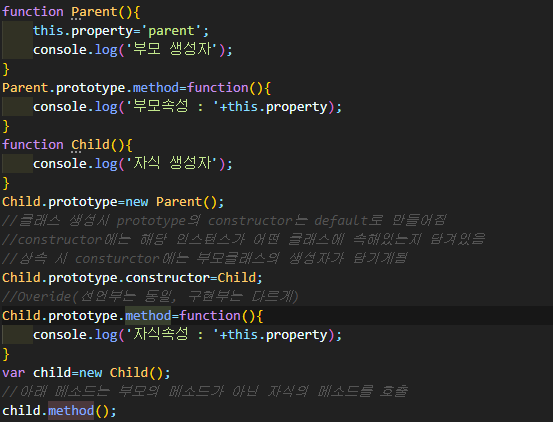 내용은 부모클래스와 다르게 자식속성 이라고 나타내도록 한다.