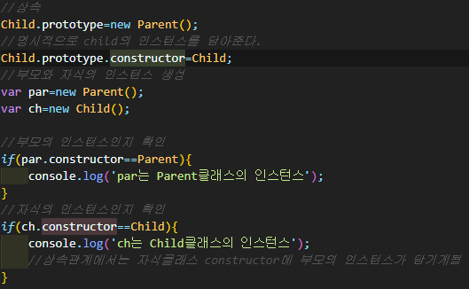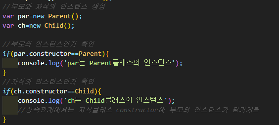 즉, ch.constructor에는 Child가 아닌 Parent가 담기므로 조건문이 실행이 되지 않았던 것