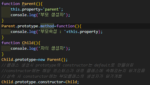 상속시에는 자식 constructor에 부모 클래스의 정보가 담기게 된다.