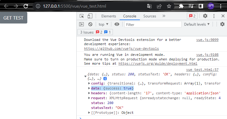 app에 리터럴 형식으로 method를 정의해 8082포트의 test경로의 사이트를 axios를 이용해 get방식으로