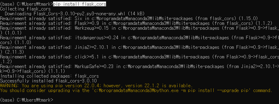 pip로 Flask에서 사용할 cors를 설치한다