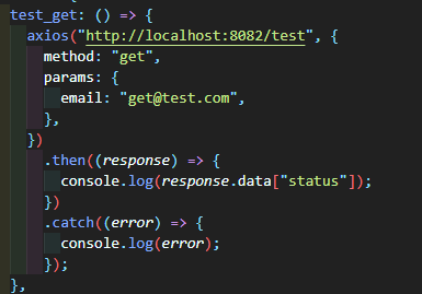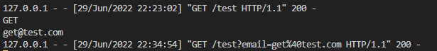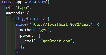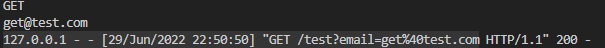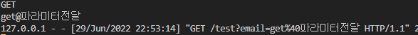 8082포트로 method값에 get이, email파라미터값에 get@test.com이 넘어간다.