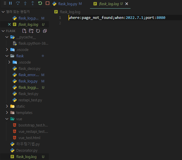 여기서 로그파일이 생성되는 위치는 flask_log파일의 위치가 아닌