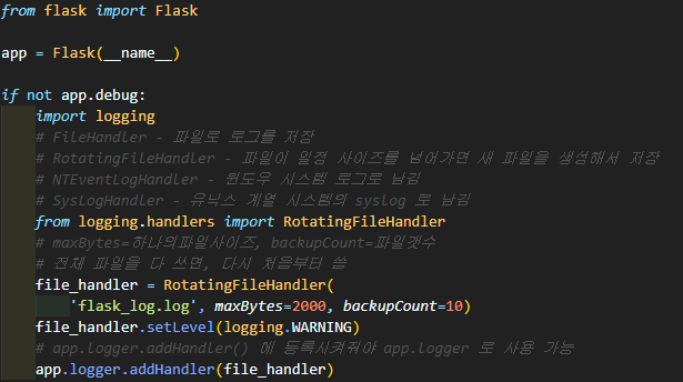 flask는 logging패키지를 지원한다.