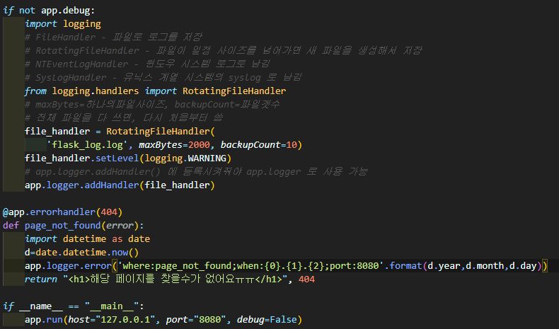 즉, 조건문은 실제 배포상황에서 오류들을 로그파일에 저장하겠다는 말이다.