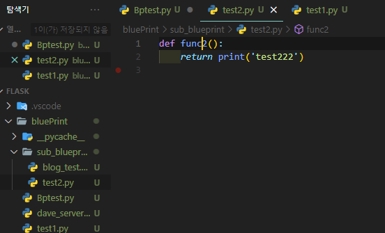 이번엔 하위 폴더인 sub_blueprint내에 test2파일을 새로 생성한다.