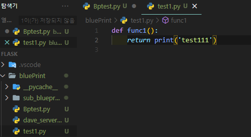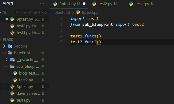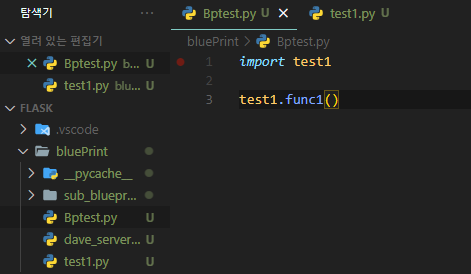 bluePrint라는 같은 폴더내에 있는 BPtest와 test1파일을 서로 import한다.
