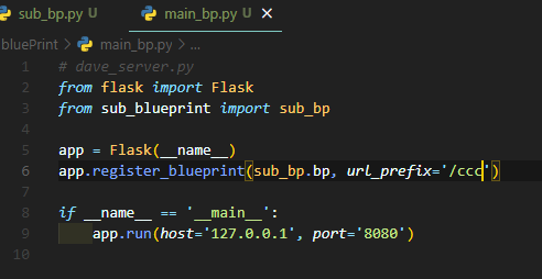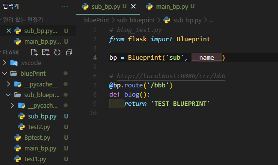 blueprint기능을 사용해 main서버에 해당 기능을 import할 파일인 sub_bp파일을 생성하고